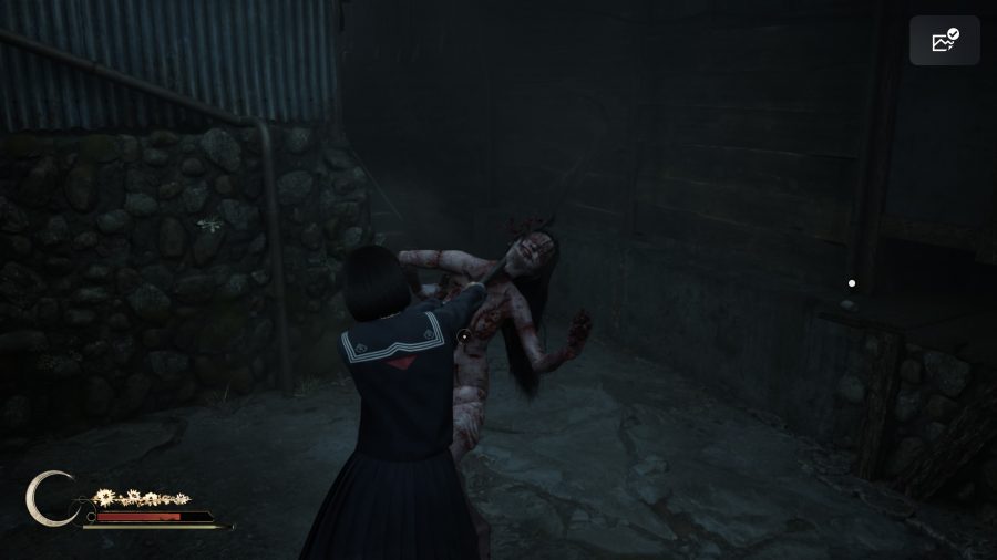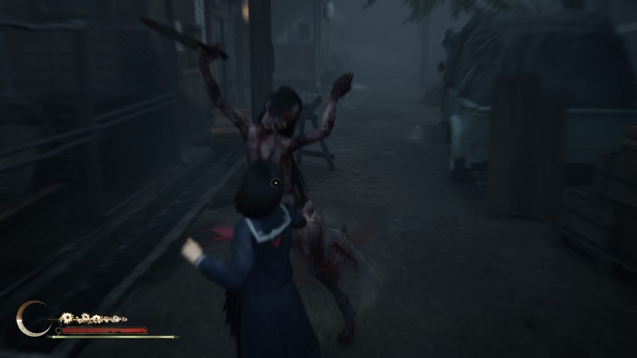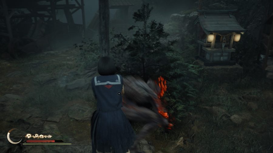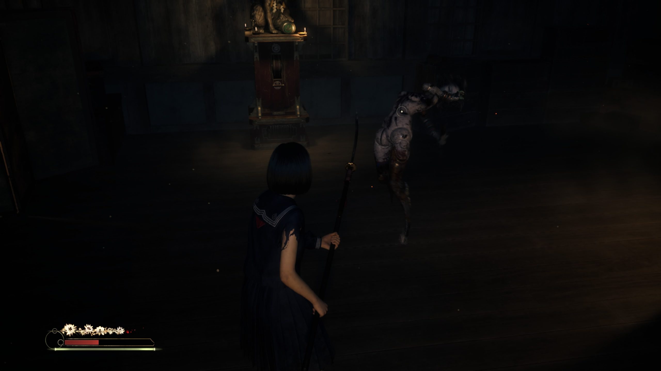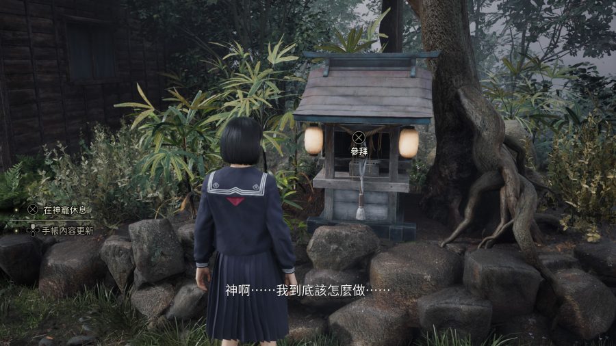 前面有提及本作的恐怖感不足,其中一個原因是在預設難度下女主角的強大與道具太多,以及極多「神龕」(篝火)有重大關係,基本上每走幾步就有火能存檔,想害怕也難吧。系列過往在霧中能見度極低,提示有怪物在附近的聲音全都沒了,這種「未知」帶來的壓抑感也一拼消失,也是一個關鍵因素。