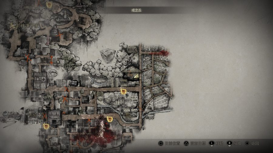 探索部分,我覺得是不錯的。首先地圖是大小適中的箱庭設計,大都是一至兩條主要道路加上幾條分岔小路,沿途有補品、武器與文件之類的,然後隨劇情推進會進入小鎮的不同部分,每個區域大約是《沉默之丘 2》重製版初始城鎮的一半吧。又由於本作要把補品在火點供奉才會獲得提升能力或抽護符的點數,所以你是會有很大的動力探索。