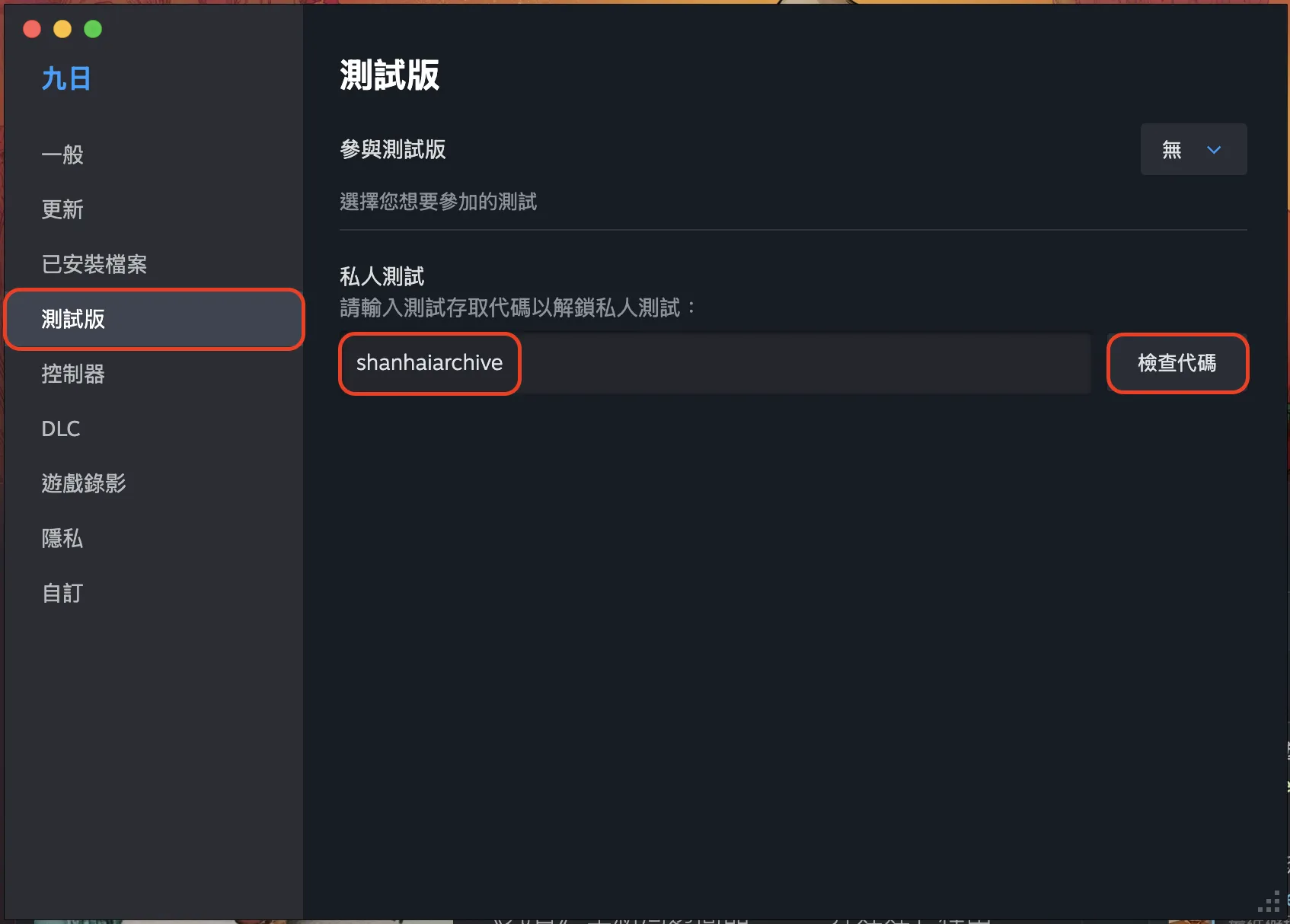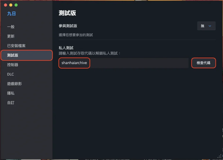 要進入這個模式只限 Steam 版本,按官網的步驟在「測試版」標籤 >「私人測試」處輸入「shanhaiarchive」,並按下「檢查代碼」,之後點擊下方確認按鈕「加入:shanhaiarchive_yuukimindscape – shanhaiarchive_yuukimindscape」,便會啟動遊戲更新,大約 1GB 左右,但由於本次活動只限時九天,大約會在 10 月 8 日結束。