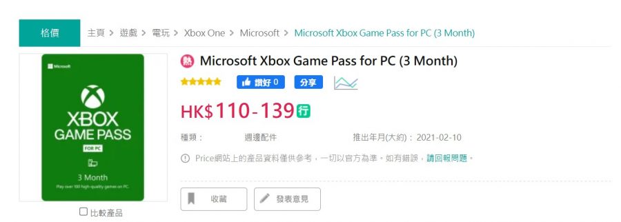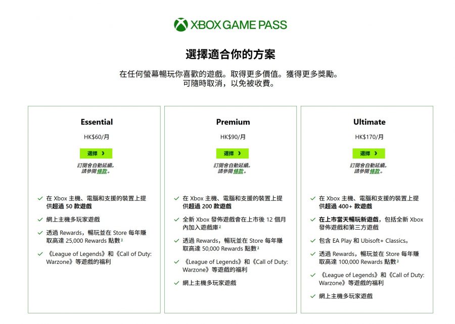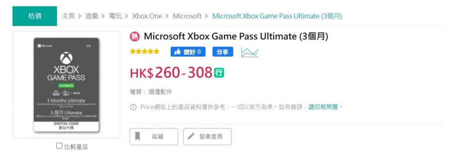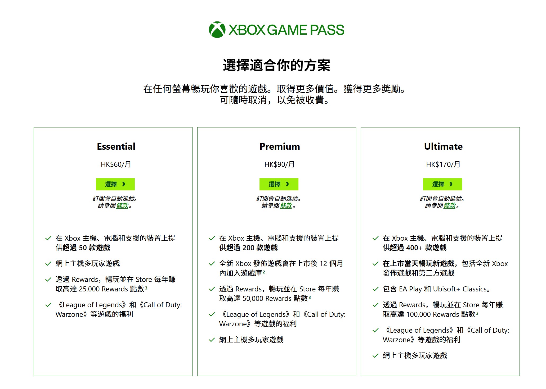 目前香港地區新價格預計於 11 月調整,日前有神秘人士透露建議玩家們要以舊價延長訂閱的話,請勿前往微軟官網、Xbox.com 或主機上購買,建議找外面的零售商,他們會在明年 1 月 15 後才調整價格。根據格價網站,3 個月的 Xbox Box Game Pass Ultimate 3 個月最低 $260 就有交易,大約 $87 一個月,但如果你本身已經有訂閱 Ultimate,那還有更低的價格玩法