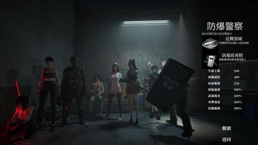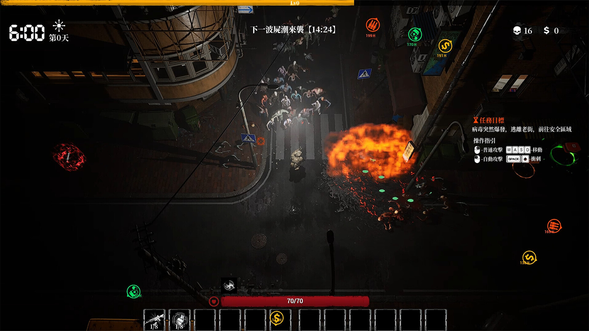 本作雖然是類吸血鬼倖存者玩法,但舞台並非讓你自由探索,而是有既定路線,例如第一個關卡是描述你在城中找路逃生,通過滿是殭屍的街道,然後會穿過中菜館、軍人佈防區等,真正有「逃出城市」的感覺。