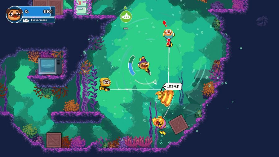 如上述,在淺水的地方較安全;在深水的地方危險四伏,但回報也越豐厚,更別說要隨時注意氧氣存量。獲得的資金能用作強化潛水艇性能或解鎖新的型號,也能為角色購買外觀裝備。