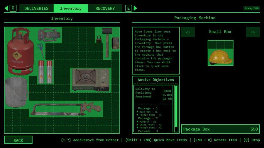 玩法主要是駕駛車輛運送貨物准時到埗,你要包裝貨物、管理庫存並妥善規劃運輸空間。有時行李尺寸可能無法放在車內,又或是爆炸物、具放射性的物品,因此要考慮如何處理。